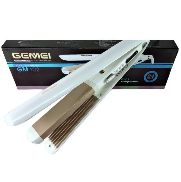 Утюжок выпрямитель для волос с гофре Gemei GM-402 2в1 обеспечивает максимальный блеск волос благодаря керамическим пластинам.
