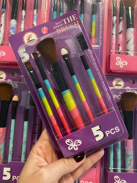 Набор включает в себя: кисть для пудры, кисть для губ, кисть для теней, кисть для бровей, щеточку-гребешок для бровей и ресниц.