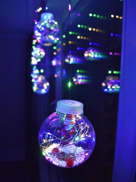Новорічна світлодіодна гірлянда-штора кулі «Дід Мороз з наповненням» 10 куль 3.0 м Мульти, Київ