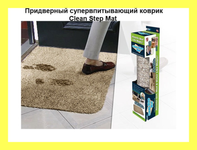 Наибольшее количество грязи всегда скапливается в коридоре. Ведь именно туда мы её приносим с улицы и если её вовремя не убрать, то через совсем короткое время она распространиться по всему дому. Особенно сложно приходится хозяевам домашних животных, ведь они не могут снять грязную обувь у порога по причине её отсутствия и оставляют грязные следы на полу. Для того чтобы облегчить себе работу и сохранить в доме чистоту, создан супервпитывающий коврик Clean Stеp Mat с уникальными абсорбирующими волокнами.