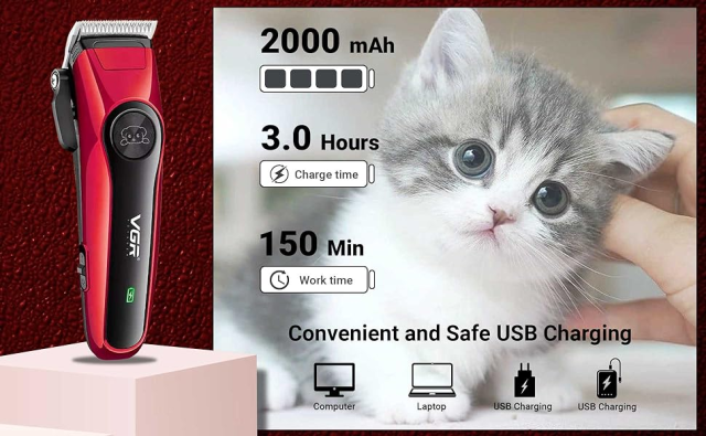 Низкая вибрация и бесшумная конструкция: машинки для стрижки домашних животных VGR с мощным двигателем, низким уровнем вибрации и бесшумной конструкцией с уровнем шума всего около 50 дБ помогают питомцу чувствовать себя комфортно и больше не бояться стрижки.