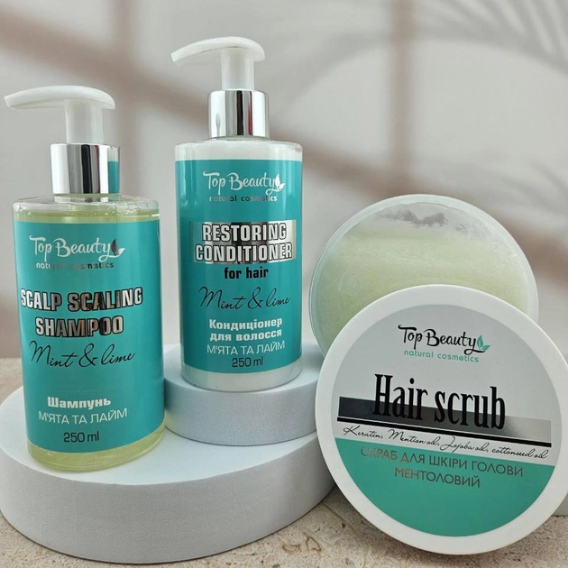 Набор для интинсивного восстановления волос «Мята -лайм» Top Beauty (шампунь,кондиционер, скраб), Київ