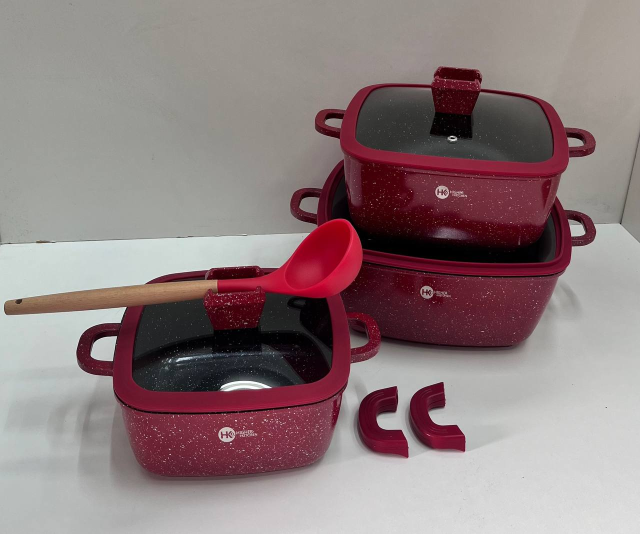 Набор квадратных кастрюль с силиконовыми крышками Higher Kitchen HK 323 8 предметов (Красный, Черный), Київ