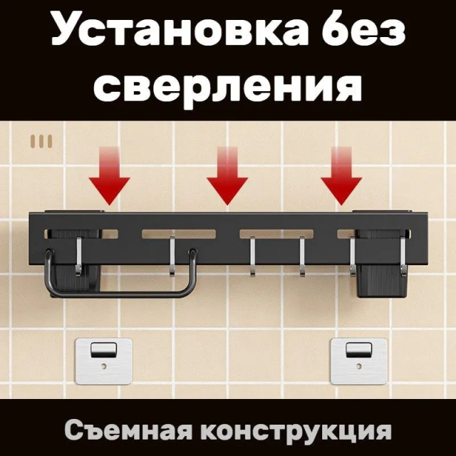 Органайзер настенный для кухни, подвесная полка держатель на стену 30 см с крючками, Київ