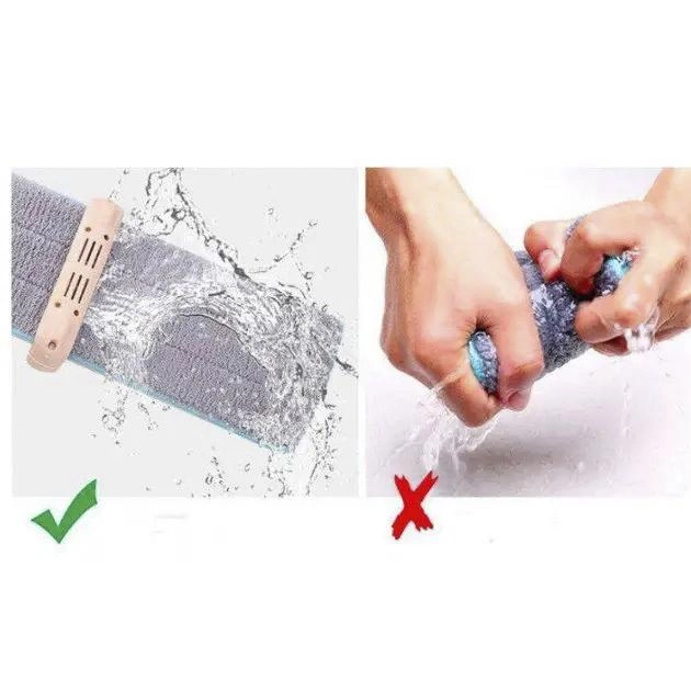 Система отжима швабры расположена на самой ручке! Эффективная система отжима удаляет до 92% воды. Накладки из двухслойной рассеченной микрофибры обладают высокой плотностью и замечательным влагопоглощением.
