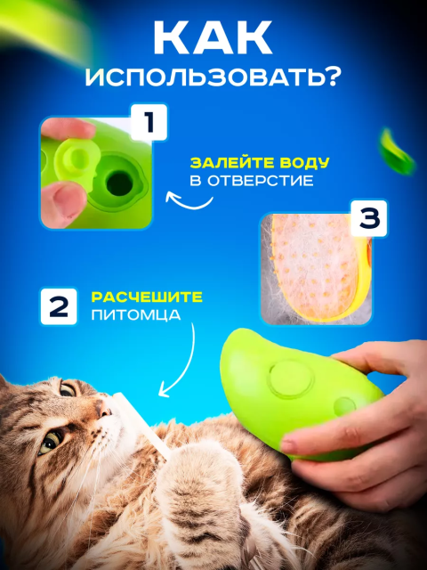 Бережно воздействует на кожу питомца: паровая щетка для кошек имеет мягкую щетину с закругленными концами, что гарантирует, что кожа вашего питомца не будет повреждена в процессе ухода.