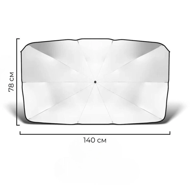Размер зонта 140х78 см - универсальные размеры для большинства автомобилей.