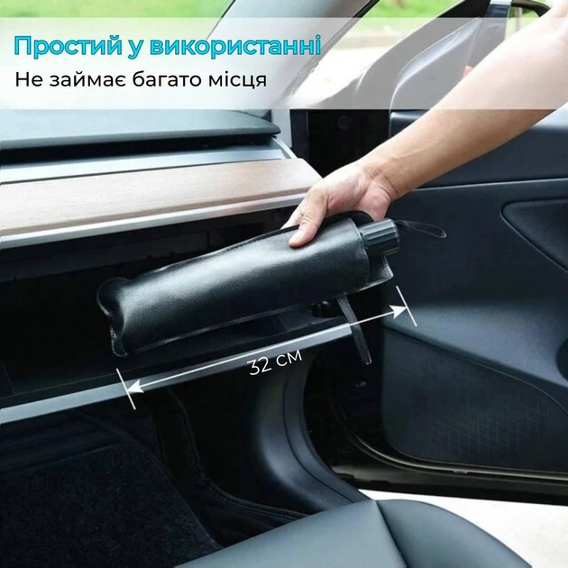 Автомобильный зонт очень компактный и эргономичный, легко и быстро открывается, а также имеет чехол для хранения. Легко складывается и не занимает много места в автомобиле.