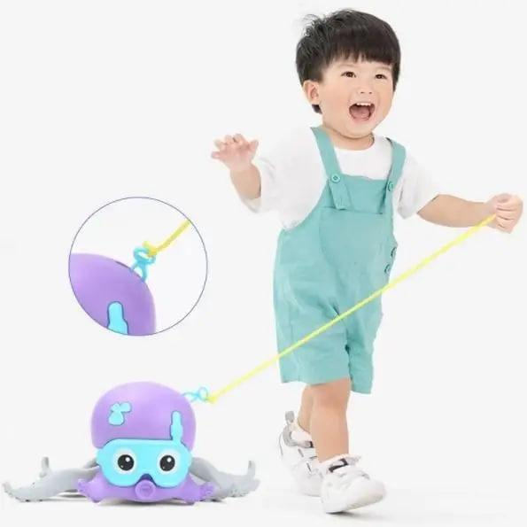 Достаточно потянуть осьминога за веревочку, и он поедет за ребенком по полу.