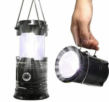 Розсувний кемпінговий ліхтар із двома джерелами світла ідеальне рішення для відпочинку на природі, для аварійного освітлення на дачі та для автомобілістів. До того ж пристрій може заряджатися від світлових променів завдяки вбудованим сонячним батареям.