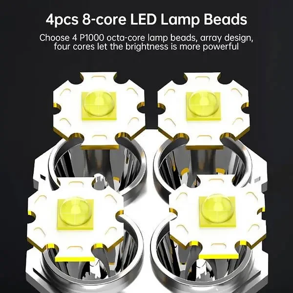 - 4 режимов работы (Сверхъяркий, точный, мерцание, боковая панель COB LED в качестве ночника)