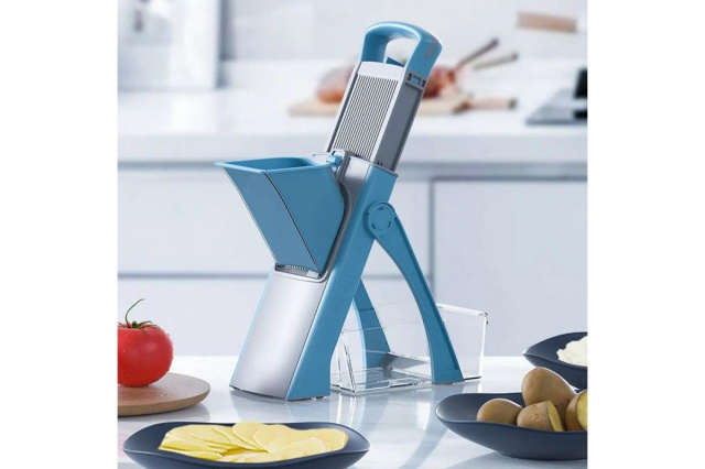 Корпус овощерезки изготовлен из экологически чистого АБС-пластика, со встроенными лезвиями из нержавеющей стали, лезвия не требуют замены, увеличенной противоскользящей силиконовой основой и конструкцией штатива для более стабильной работы.