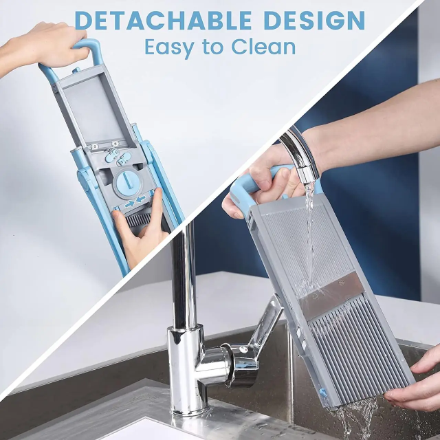 Наш модернизированный слайсер с увеличенным входом и большей вместимостью позволяет безопасно нарезать, очищать, нарезать кубиками и шинковать овощи за считанные секунды, регулируется до любой толщины от 0,1 до 8 мм, более 40 различных вариантов. Не нужно менять лезвия для резки, этот кухонный инструмент для измельчения идеален. для приготовления еды.