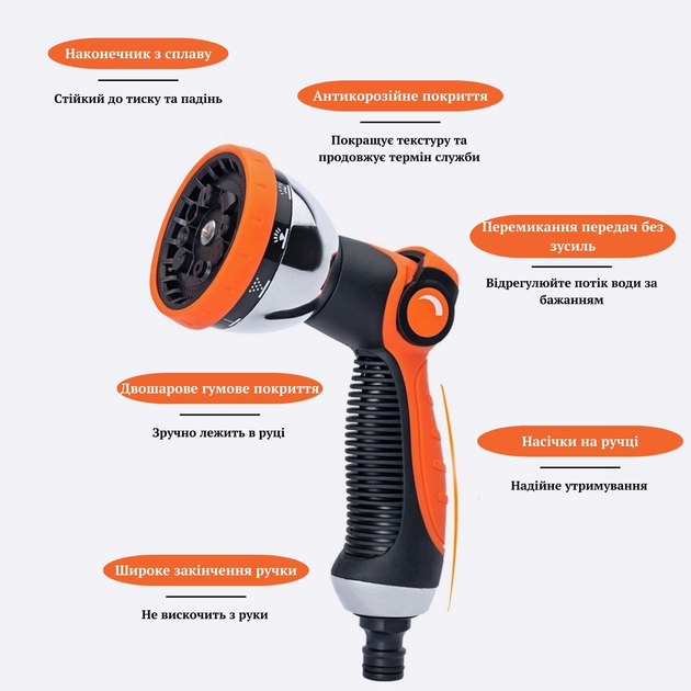Представляем вам наш универсальный пистолет распылитель, который станет отличным помощником в вашем хозяйстве. С 10 режимами распыления и адаптером