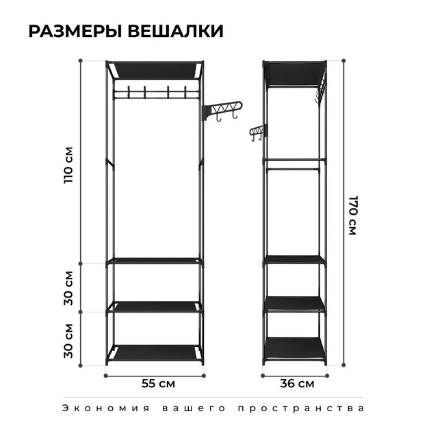 Органайзер для хранения вещей – идеальное решение для тех, кто ценит комфорт и порядок. Эта напольная вешалка представляет собой универсальное пространство, заменяющее шкаф, стеллаж и полку. Вы сможете легко организовать хранение вашей одежды, обуви, головных уборов, сумок и многого другого.
