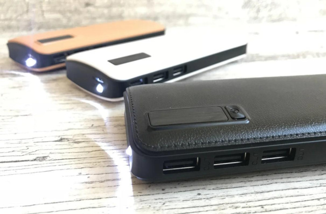 Также Power Bank 50000 mah отличает лаконичный и стильный дизайн. Корпус выполнен из прочного пластика. На торце размещен разъем для зарядки самого аккумулятора и LED фонарик, а сбоку на корпусе размещены три USB разъема для зарядки от него других устройств. Также на корпусе имеются индикатор степени зарядки внешнего аккумулятора и кнопка включения.