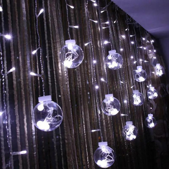 Таку новорічну прикрасу можна розмістити в інтер'єрі у будь-якому бажаному місці – у великих віконних отворах, на арках та парапетах, на стіні, над нішою. Вона ідеально підійде для святкового зонування приміщення. Відмінно виглядатиме вздовж барної стійки. Світлодіодна гірлянда-кулі найкраще допомагає розставити яскраві акценти.