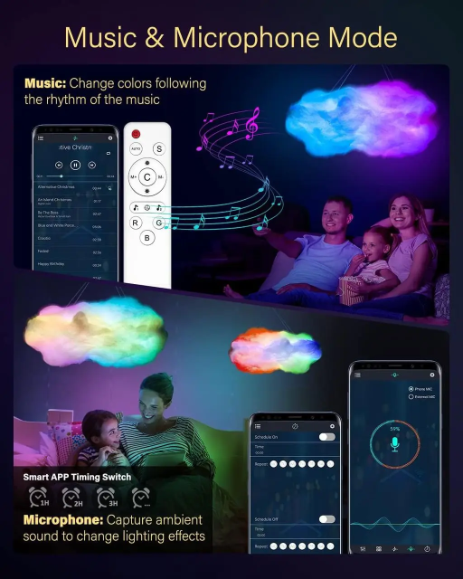 Синхронізація з музикою: Вбудований мікрофон дозволяє лампі змінювати кольори в такт музиці, створюючи динамічну атмосферу.