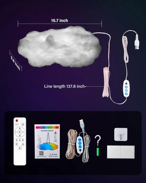 Фарбове освітлення: Лампа створює ефект блискавок та райдужних хмар, які підійдуть для спальні, дитячої або тематичних вечірок.