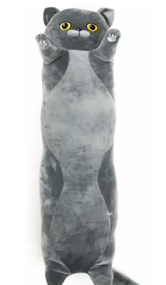 М'яка іграшка подушка довгий кіт батон антистрес сірий 70 см