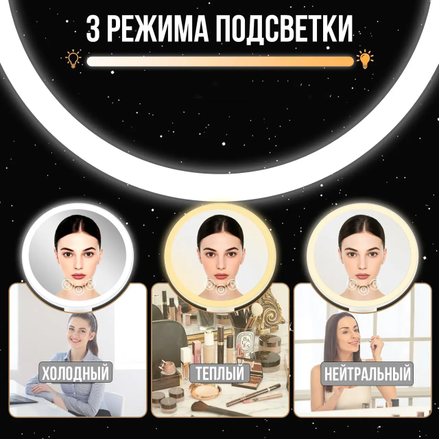 Багатофункціональність: Дзеркало можна використовувати не тільки для макіяжу, але і як лампу або ліхтар для селфі.