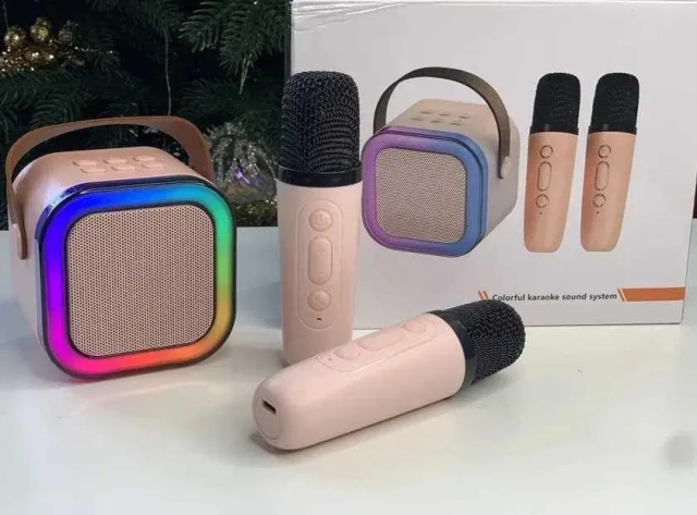 Динамік блимає та переливається, на мікрофоні можна збільшувати гучність голосу!Портативна колонка караоке з бездротовим мікрофоном K12 - це ідеальний пристрій для тих, хто любить співати і веселитися. Ви можете підключити свій смартфон або планшет до колонки через Bluetooth і вибирати пісні з будь-якого джерела. Колонка має потужний звук і яскраве підсвічування, що створює атмосферу свята. Бездротовий мікрофон дозволяє вам співати без обмежень, а також регулювати гучність і ефекти голосу. Портативна колонка караоке з бездротовим мікрофоном K12 - це чудовий подарунок для себе або своїх друзів.