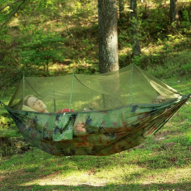 Вбудована антимоскітна сітка захищає від комах, створюючи затишний спальний простір навіть в умовах дикої природи. Простора конструкція забезпечує свободу рухів, а міцні кріплення гарантують надійну фіксацію.