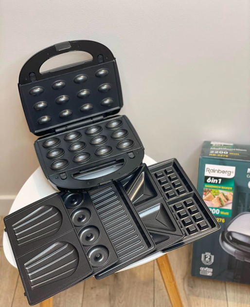 Мультимейкер бутербродница 6 в 1 Rainberg RB 2276 2200 Вт со сменными насадками, Київ
