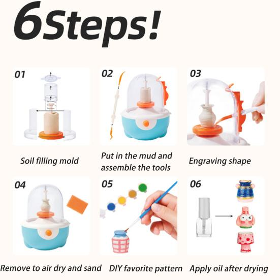 Представляємо нашу іграшку з гончарним кругом. Наше електричне керамічне колесо є легким, компактним і його легко зберігати, що робить його ідеальним для молодих художників. Знімне колесо та піддон для бризок забезпечують легке чищення, забезпечуючи приємне враження після кожного творіння. Цей набір для гончарного круга включає все, що вам потрібно для початку роботи, з міні-гончарним кругом, який пропонує плавне регулювання швидкості. Налаштуйте швидкість відповідно до ваших конкретних гончарних потреб, незалежно від того, початківець ви чи досвідчений гончар. Портативність цього набору дозволяє вам майструвати будь-де, від школи до власної художньої студії, розширюючи свої художні можливості. Завдяки стильному та яскравому дизайну наш набір кераміки ідеально підходить для надихання на творчість у будь-якому віці. Це не просто інструмент для мистецьких проектів, а захоплюючий досвід, який знайомить вас зі світом кераміки. Будьте готові дати волю своїй уяві та створити чудову кераміку за допомогою нашої іграшки для гончарного круга.