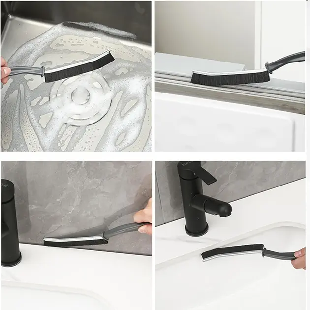 Універсальна ультратонка щітка призначена для різних завдань із прибирання будинку, ванної кімнати та кухні. З її допомогою легко очистити плиткові шви, стики, щілини кухонного куточка, а також місця кріплення змішувачів та отвори віконних рам. Ця щітка оснащена щільною нейлоновою щетиною, що ефективно видаляє різні забруднення. Щітка також має ергономічну ручку, що полегшує збирання.