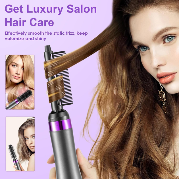 Стайлер для волосся UKLISS 6 в 1 з іонізацією, потужністю 800 Вт та двигуном 25 000 об/хв – професійний багатофункціональний прилад для сушіння, укладання, завивки та випрямлення волосся. Підходить для всіх типів волосся, дбайливо доглядає, запобігає пересушуванню та надає зачісці салонного вигляду.