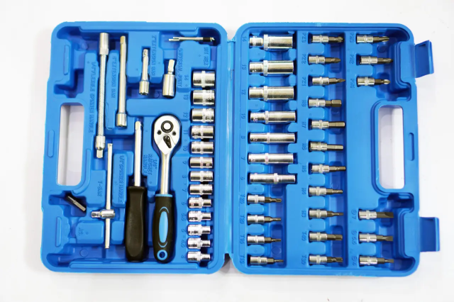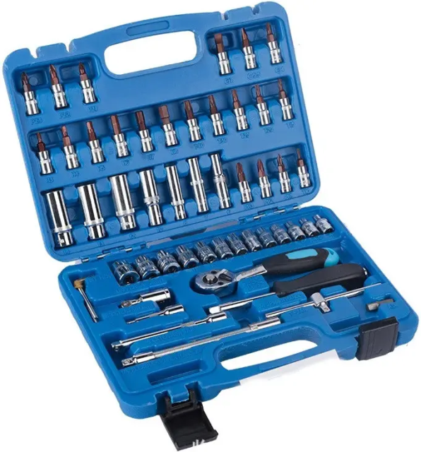 Набір інструментів 53 предмети в кейсі Набір інструменту містить у своєму арсеналі 53 предмети. До набору входять торцеві головки (6-г.) від 4 до 14 мм, тріскачка, вороток, подовжувачі, кардан під приєднувальний квадрат 1/4". У комплекті є насадки SL, PH, PZ, HEX, TORX. Всі позиції з набору мають своє посадкове місце. Комплект має невелику вагу та порівняно малі габаритні розміри, що дасть змогу зручно його транспортувати та зберігати. Набір чудово підійде для аматорського та побутового використання. Набір містить усі необхідні інструменти для проведення ремонтних робіт: автомобільних, слюсарних, побутових та інших. Усі деталі виготовлені з міцної легованої хромо-ванадієвої сталі. Інструменти зручно упаковані в міцний пластиковий кейс. Характеристики: Матеріал інструментів: хромованадієва сталь із нікельованим покриттям. Кількість інструментів: 53 шт. Кейс: міцний пластиковий із замками. Умови зберігання: зберігати в захищеному від вологи місці. Термін придатності: необмежений. Комплектація 1/4” | 6.3 мм 21 шт. торцеві головки з насадками: SL4, 5.5, 7; PH1, 2, 3; PZ1, 2, 3; H3, 4, 5, 6, 7, 8; T10, 15, 20, 25, 30, 40. 13 шт. торцеві головки 6-гранні: 4, 4.5, 5, 5.5, 6, 7, 8, 9, 10, 11, 12, 13, 14 мм. 7 шт. торцеві головки 6-гранні подовжені: 6, 7, 8, 10, 12, 13, 14 мм. 1 шт. карданний шарнір. 1 шт. подовжувач 51 мм. 1 шт. подовжувач 101 мм. 1 шт. гнучкий подовжувач. 1 шт. Т-подібний комір. 1 шт. тріскачка зі швидким скиданням 72T. 3 шт. Г-подібні шестигранні ключі: 1.5, 2, 2.5 мм. 1 шт. викрутка-тримач головок. 1 шт. AD адаптер.