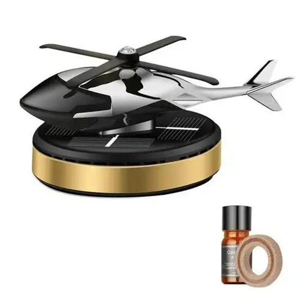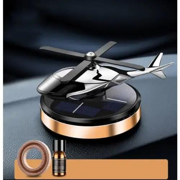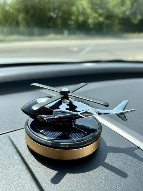 Ароматизатор «Вертоліт» являє собою стильний і функціональний аксесуар для вашого автомобіля. Натхненний дизайном гелікоптера, він оснащений обертовими елементами, що створюють ефект руху і надають салону динамічності. 3D-елементи в золотистому кольорі надають виробу елегантного та сучасного вигляду, що ідеально вписується в інтер'єр будь-якого автомобіля. В основі ароматизатора - високоякісна система випаровування, що забезпечує тривалий і рівномірний розподіл аромату, роблячи поїздки більш комфортними і приємними.