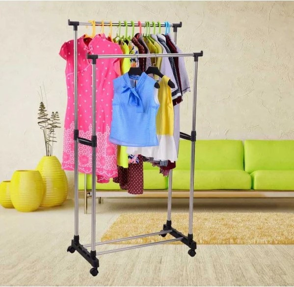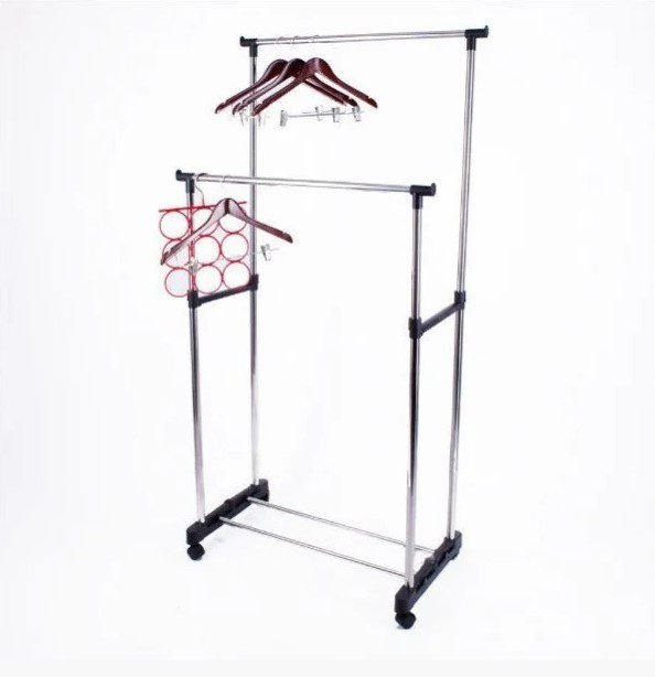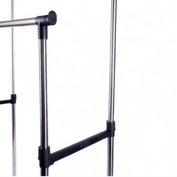 Ви зможете пересунути стійку навіть повністю завішаний одягом. Стійка Double Pole Clother Hose виконана двоповерховою, для впорядкування і нормального, компактного, розміщення одягу на ній. Бічні поперечні планки зручні для розміщення на них, наприклад, випрасуваних штанів. Найкраще для стійки використовувати вішалки, так що одягу можна розмістити в рази більше.