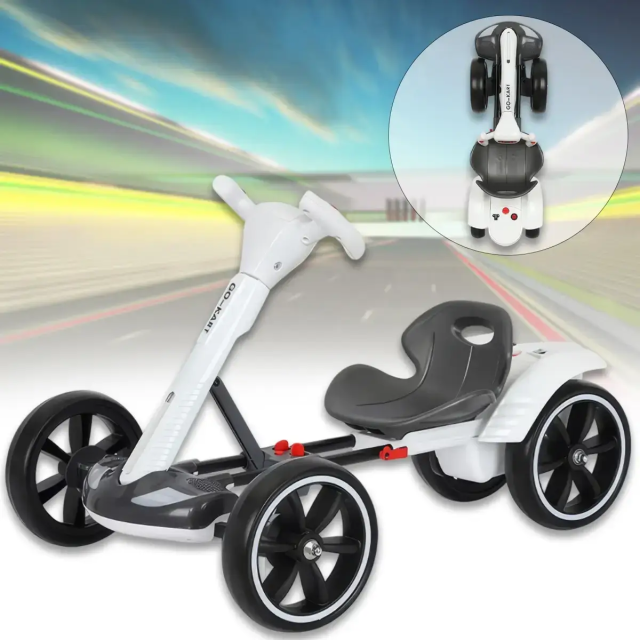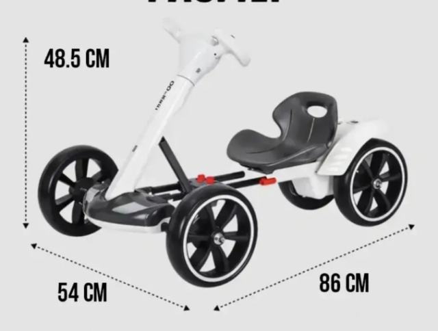 Міцна конструкція гарантує довговічність, а зручне сидіння та потовщена спинка забезпечують комфорт під час їзди. Компактний складний корпус дозволяє легко зберігати електромобіль, а сидіння, що регулюється, підлаштовується під ріст дитини. Ця модель – ідеальний подарунок для хлопчиків та дівчаток від 3 до 8 років!