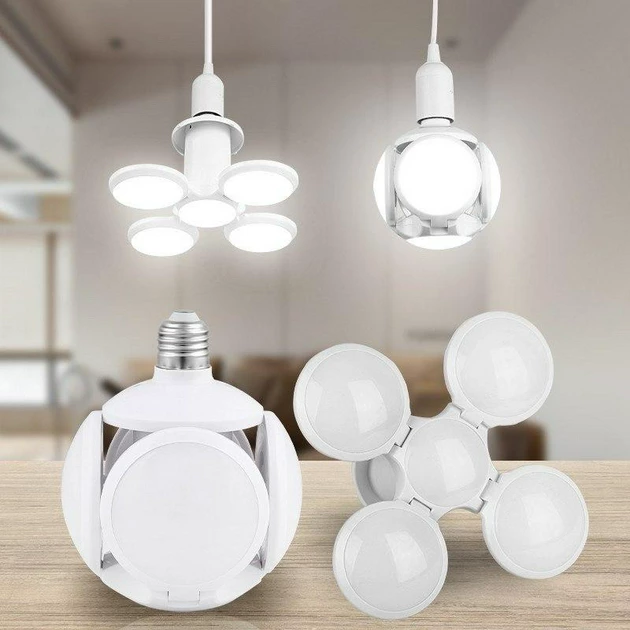 Складаний LED світильник Football UFO Lamp, E27 – креативний та новий легкий дизайн з футбольною формою, призначений для освітлення різних інтер’єрів вашого будинку, можна використовувати у майстернях та гаражах. Низьке енергоспоживання та понад яскравість. Безпечне освітлення: вбудований інтелектуальний основний чіп може захистити світло від перевантаження струмом, перенапруги та перевантаження.