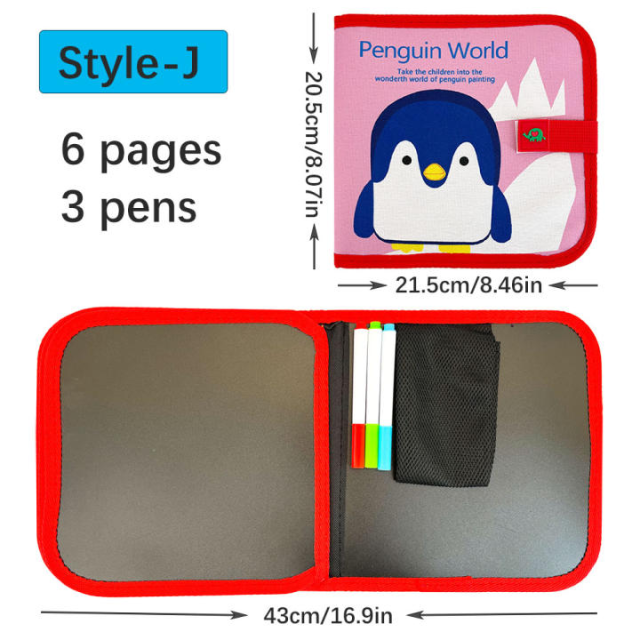 Оригінальний багаторазовий альбом з милими пінгвінами допоможе вашій дитині розвивати фантазію, моторику та любов до малювання. Ідеально підходить для дому, поїздок та розваг у дорозі.