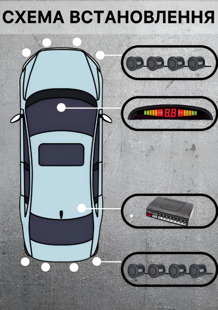 Парктронік на 8 датчиків, паркувальна система Premium Parking Assistant Sensor з LED дисплеєм, Київ