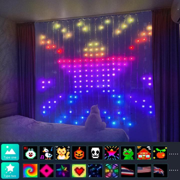 Розумна гірлянда-штора Smart-штора LED (3x2 м) — це інноваційна гірлянда для створення унікальної атмосфери у будь-якому приміщенні або на вулиці. Завдяки можливості програмувати освітлення через мобільний додаток iDeal, ви можете створювати різні світлові ефекти, тексти та малюнки, і навіть синхронізувати світло з музикою. Підключення через Bluetooth та пульт дистанційного керування дозволяє легко налаштовувати режим роботи гірлянди, а USB-живлення забезпечує універсальність і зручність підключення.