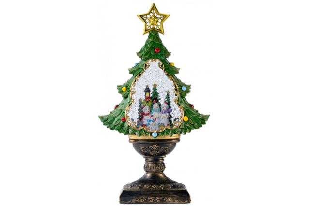Новорічний сніжний світильник-декор «Ялинка» (XHF-8002) (24.5*10.5*43.5см) (LED, 5 різдв. мелод., USB, Батарейки: AA*3), Київ
