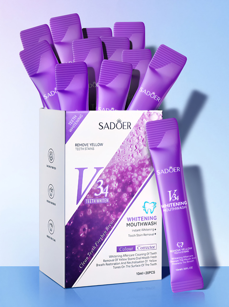 Фіолетовий ополіскувач для порожнини рота SADOER V34 із серії Colour Corrector — це засіб для візуального освітлення зубів та освіження дихання....