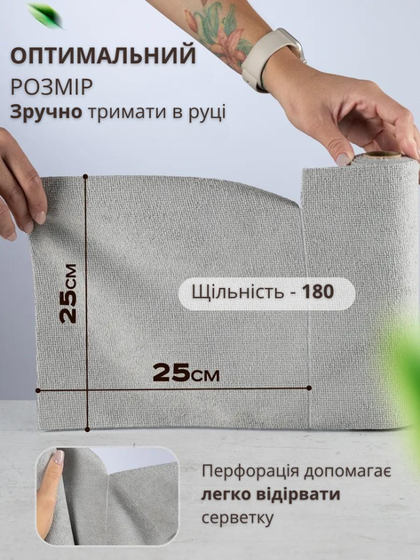 Серветки з мікрофібри в рулоні 20 шт багаторазові, без ворсу, суперпоглинаючі, 25×25 см, Київ