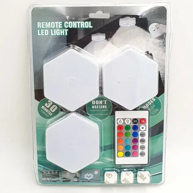 Модульний LED світильник сенсорний шестигранний настінний з пультом Кольоровий