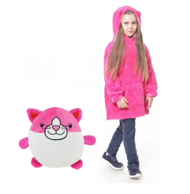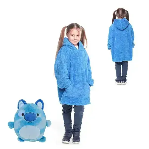 Плед-іграшка чудово підійде для ігор просто неба — якщо стане прохолодно, її легко перетворити на худі та можна не носити із собою куртку. Під час тривалих поїздок Худі-іграшка замінить подушку, вона дуже м'яка та приємна на дотик. незвичайна кумедна іграшка, яка легко перетворюється на зручну та затишну худі-товстовку.