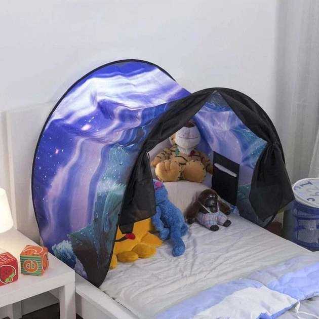 Дитячий намет тент для сну Dream Tents - це дивовижний аксесуар, який перетворює звичайне ліжко на затишне місце для відпочинку та ігор, створюючи магічну атмосферу для дітей. Намет має яскравий та барвистий дизайн, який захоплює уяву дітей та створює атмосферу чарівництва та затишку у їхній спальні.