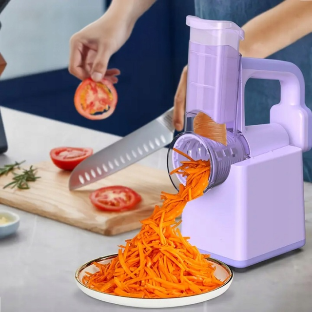Цей електричний слайсер поєднує в собі функції нарізки, подрібнення і подрібнення. Без проблем впорається з овочами,фруктами, шоколадом і навіть льодом❄️ – зробить, що робота на кухні стане швидше і простіше!