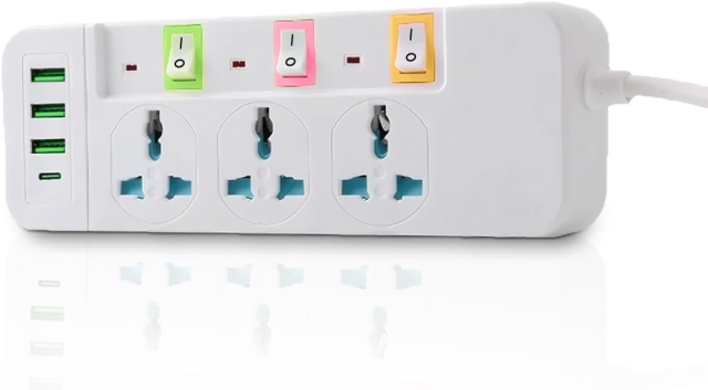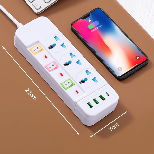 Безпечне живлення кількох пристроїв: 3 універсальні розетки змінного струму та 3 порти USB потужністю 2500 Вт — ідеально підходить для телефонів, ноутбуків, вентиляторів та інших пристроїв одночасно.