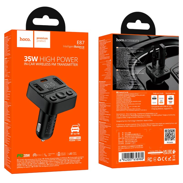 FM- модулятор HOCO E87 Delta /PD20W+15W /1*Type-C+2*USB /BTv5.4, Київ