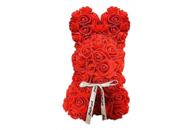 Зайчик з 3D троянд у подарунковій коробці KR-21 17/17/25см Червоний, Київ