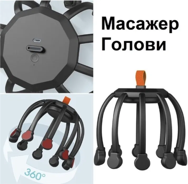 Массажер для головы K108, Черный / Электрический ручной массажер для головы в форме осьминога, Київ